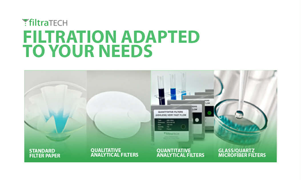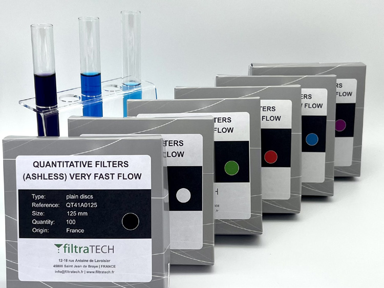 Those grades are made with high purity cotton linters fibres and cellulose fibres (ash content of 0.06%). The qualitative filter papers allow to determinate with great precision the nature of the filtered solutions and to check the composition of the samples. They offer better resistance to chemicals and moisture compared to standard filters and thus can be used for food, beverages, environmental analysis (air, soil ...).